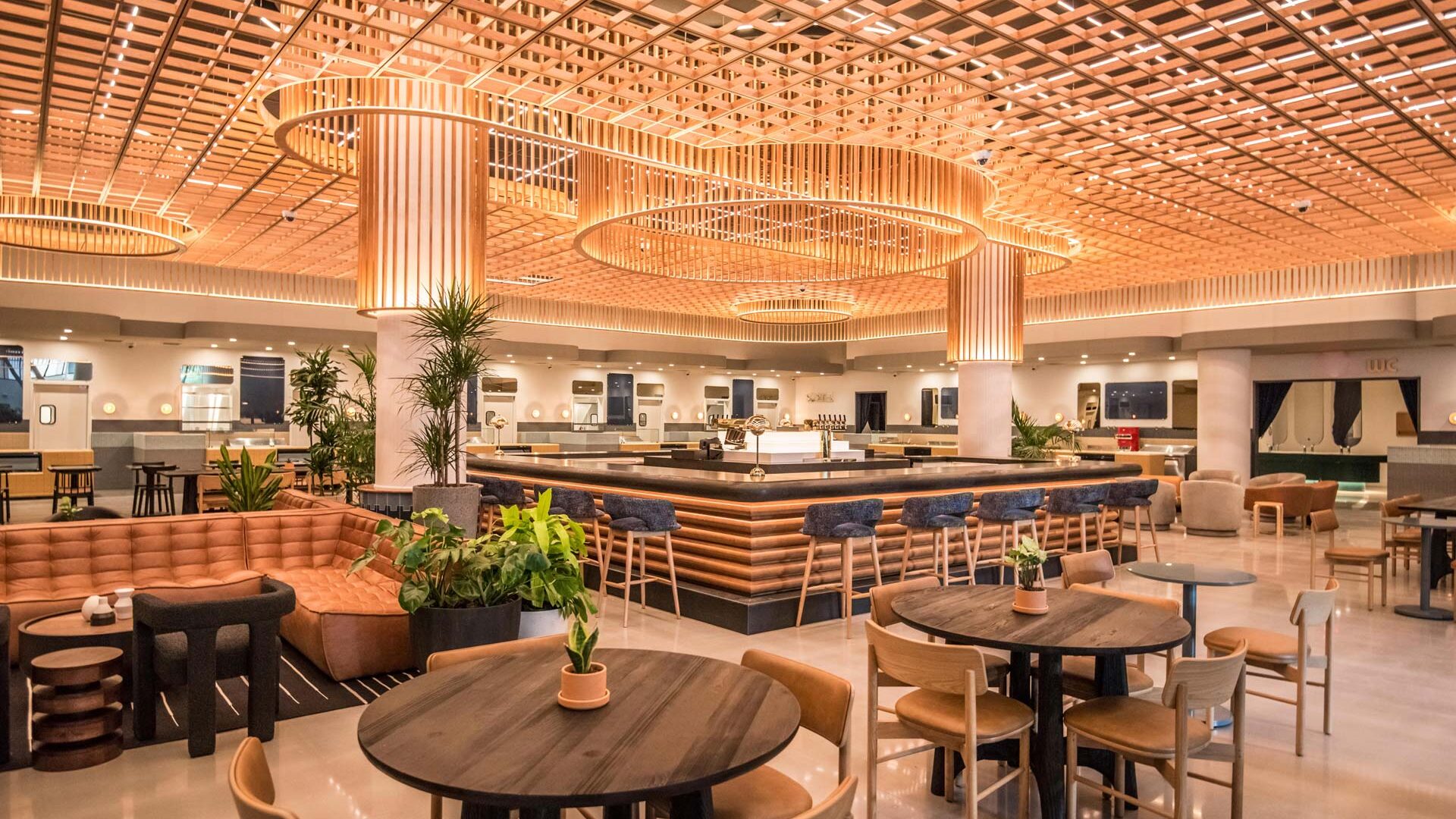 Fit-up of a food hall featuring a commissary kitchen, five hot vendors, six cold vendors, a main “Market Hall” with a bar and dining, event space, a meeting room, and outdoor dining and entertainment space.